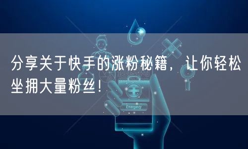 本文将为你揭秘快手平台上不为人知的涨粉技巧,带你了解如何通过优化内容、精准定位、互动营销等手段,快速提升账号粉丝数量,让你的账号在短视频平台上飞速成长。2025-06-21 | 分类:快手免费刷粉丝 | 浏览:827