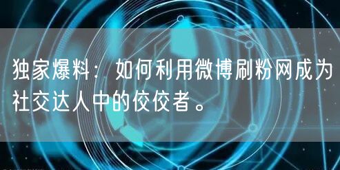 本文详细介绍了如何通过自助下单刷粉的方式快速增加微博曝光率和影响力,包括微博营销技巧和推广策略等内容,帮助您扩大微博影响力,吸引更多关注和粉丝。